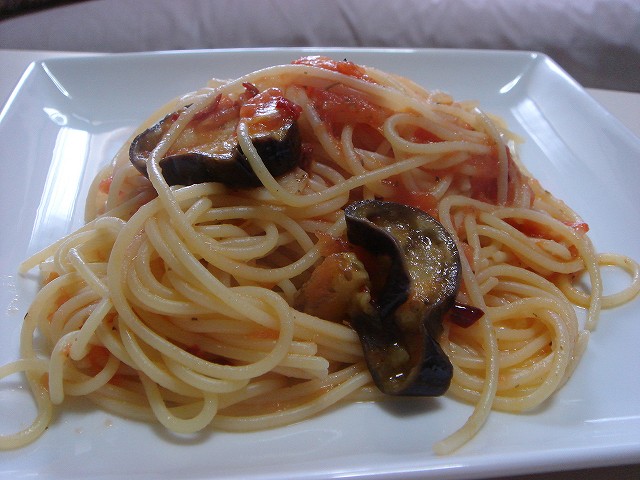 なすとトマトのパスタ。